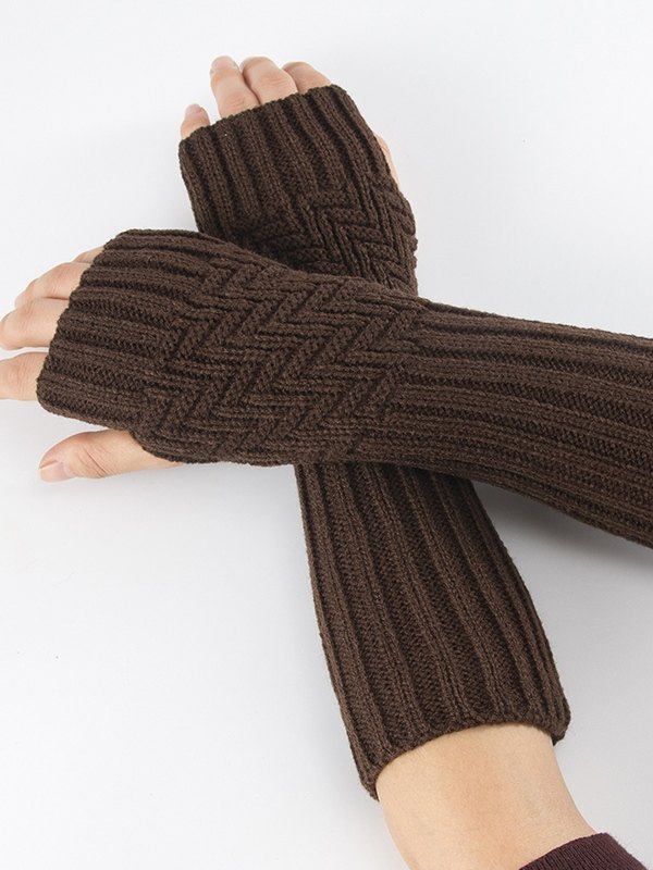 Fingerless Jacquard Ribbed Knit Arm Warmer