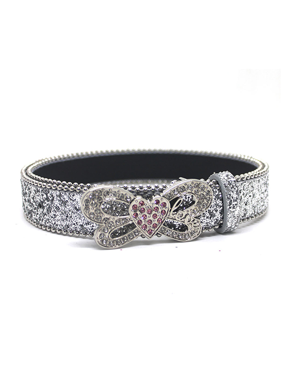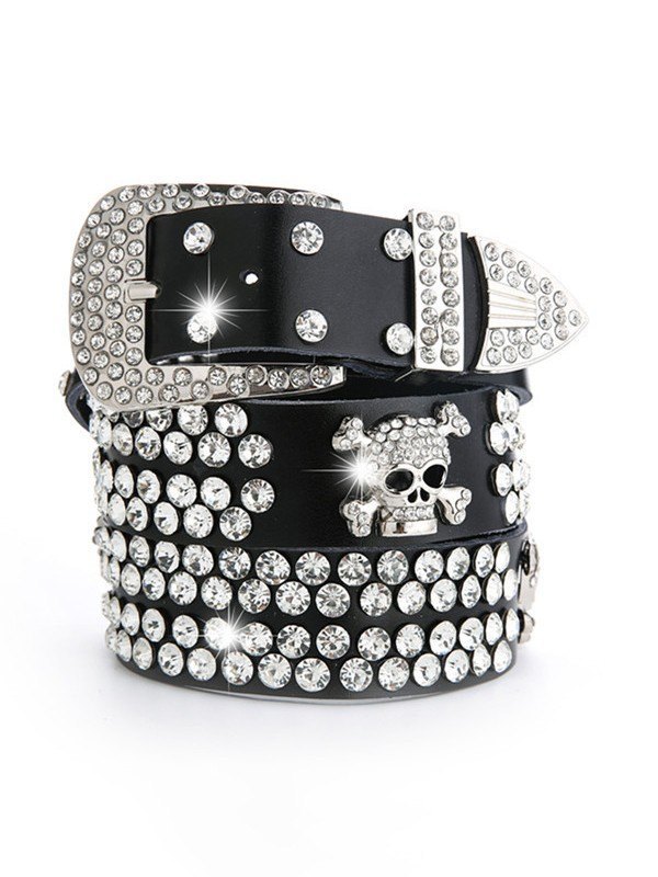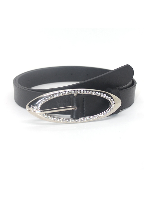 Hollow Out Oval Glittering Rhinestone Buckle Belt