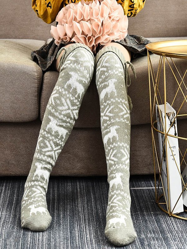 Christmas Jacquard Knee High Socks