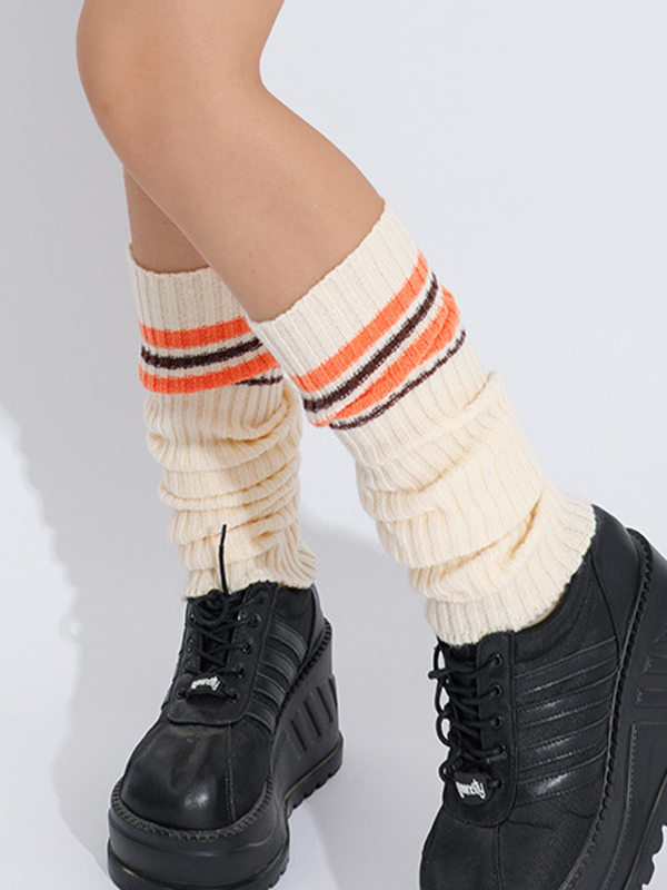Preppy Ribbed Stripe Splice Leg Warmer
