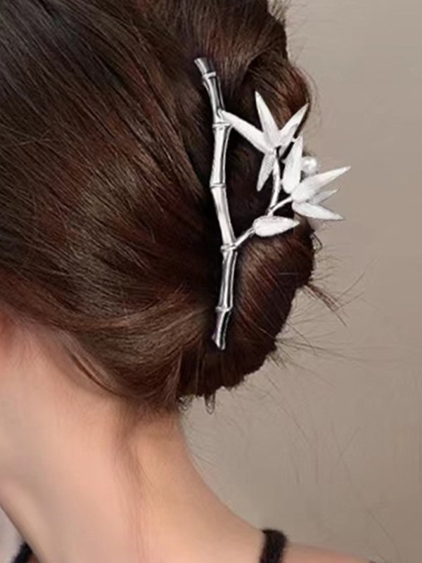 Bamboo Leaf Silver Hair Claw Clip