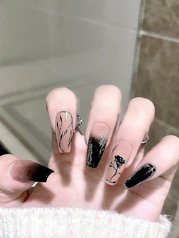 24pcs Shiny Rose Long Press On Nails