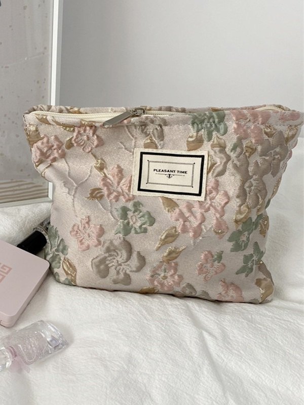 Vintage Embossed Floral Makeup Bag