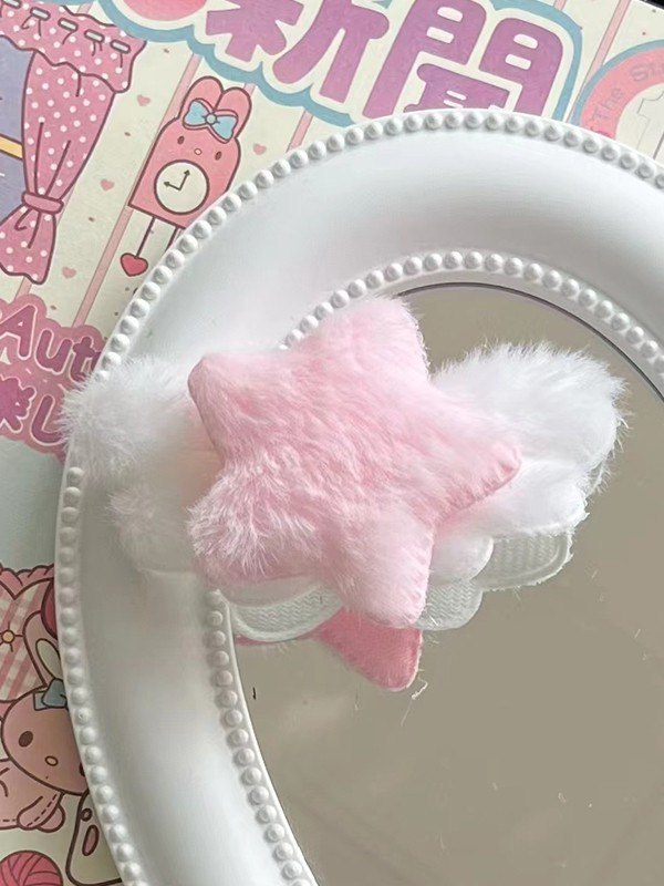 Fuzzy Winged Star Charm Hair Clip