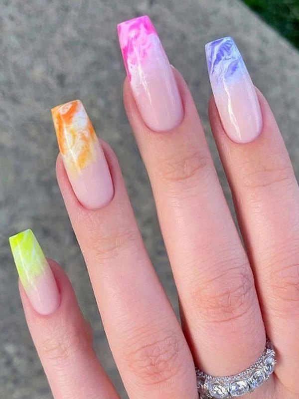 24pcs Smudge Rainbow Long Press On Nails
