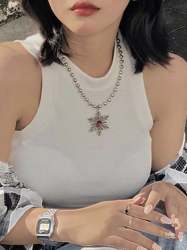 Vintage Star Red Diamond Pendant Necklace