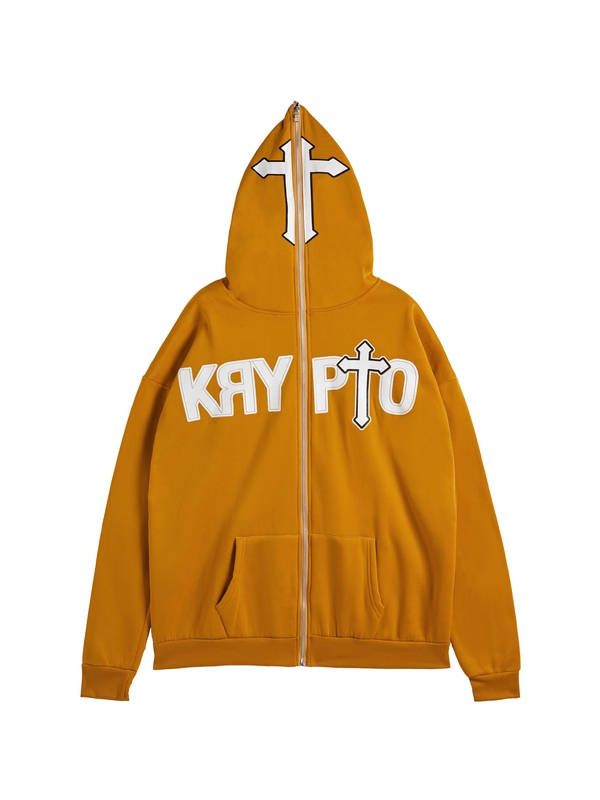 Men’s Hip Pop Print Full Zipper Oversized Hoodie
