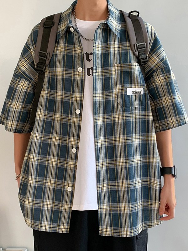 Men’s Pocket Buttoned Short Sleeve Checkered Shirt