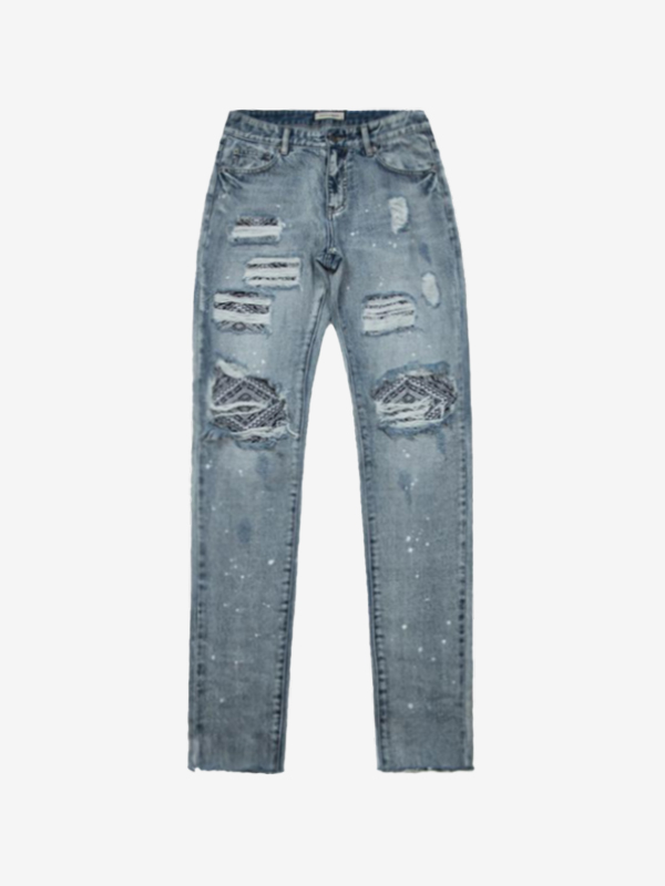 Men’s Vintage Distressed Splice Whisker Wash Loose Jeans