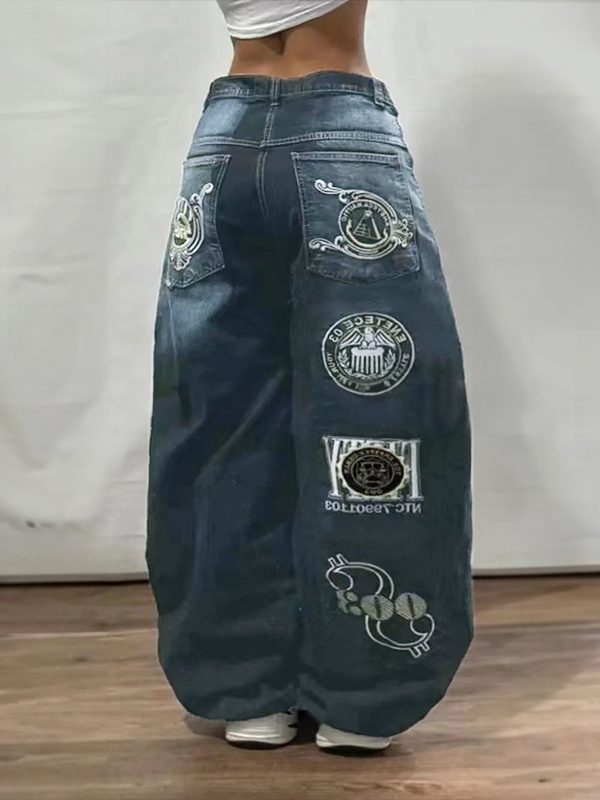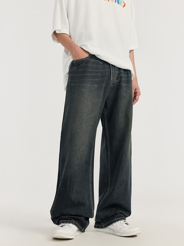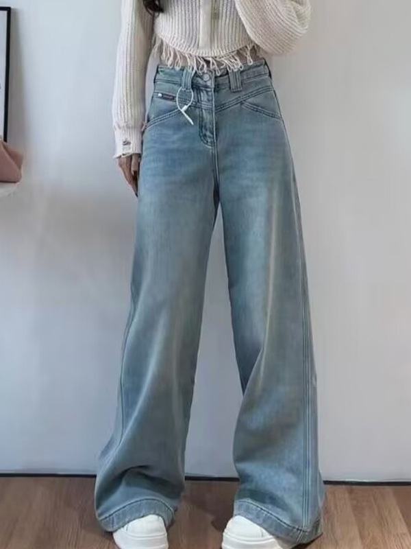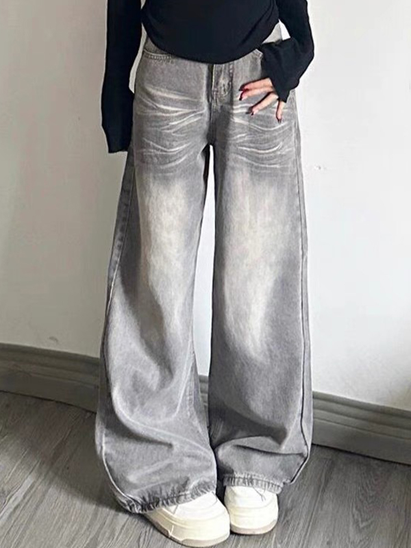 Vintage Coated Wide Legs Loose Jeans