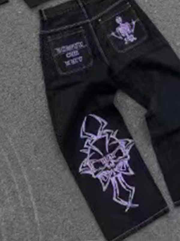 Fully Embroidered Skull Boyfriend Jeans
