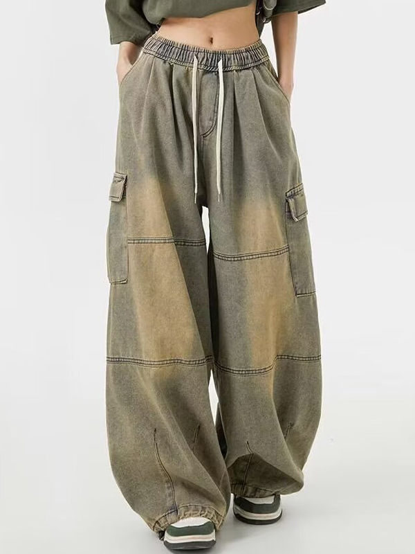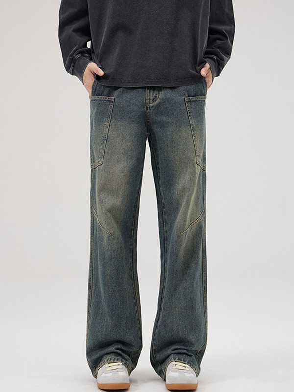 American Retro Multi-Pocket Workwear Loose Jeans