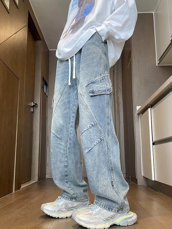 Wide Leg Draping With Pocket Design Boyfriend Jeans