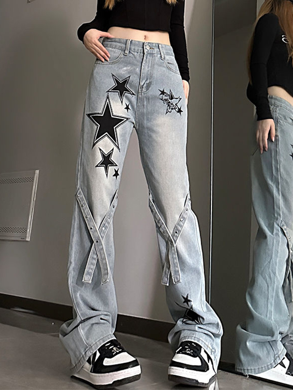 Graffiti Print American High Waist Loose Jeans Boyfriend Jeans