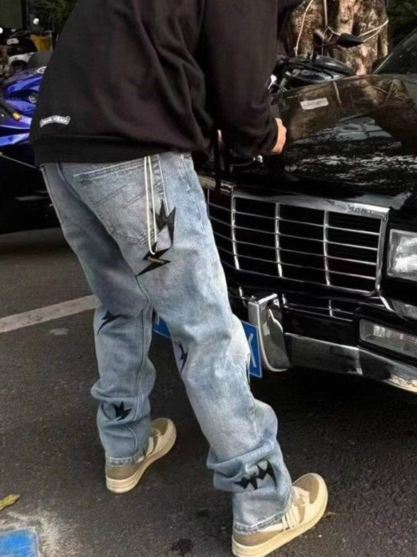 Men’S American Retro Niche Leopard Print Loose Jeans