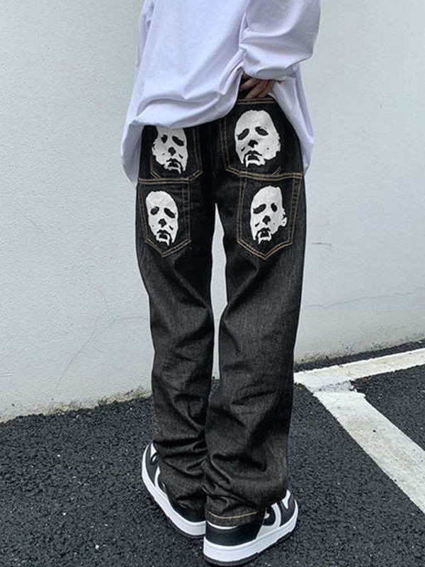 Men’s Hip Pop Letter Print Loose Jeans