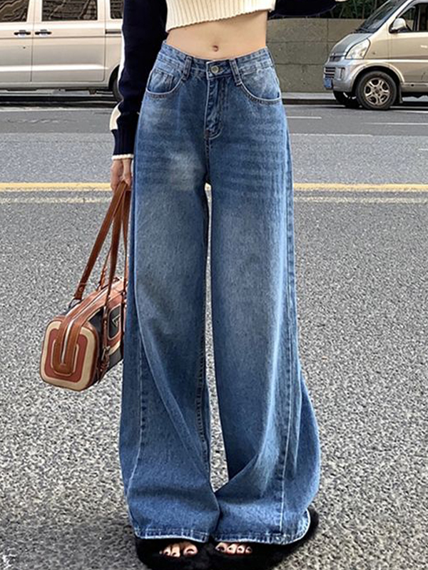 Blue Straight Wide Legs Loose Jeans