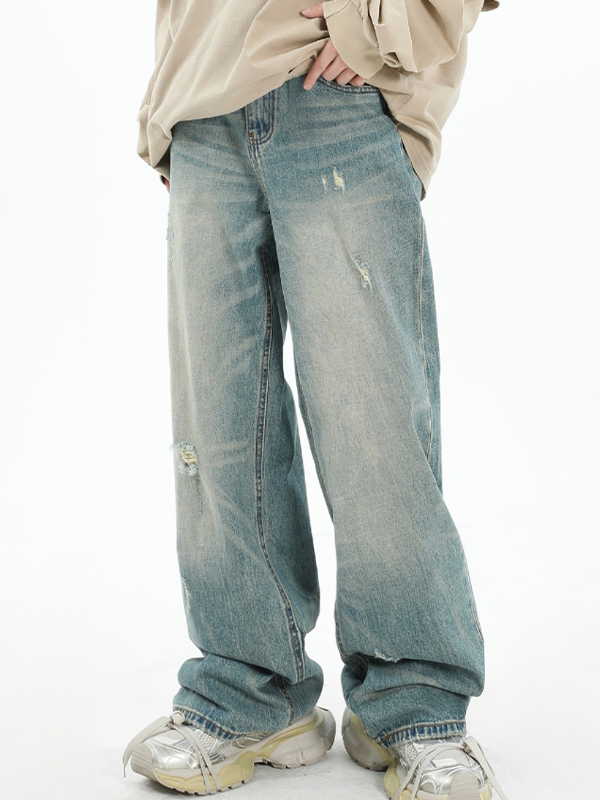 Men’s Washed Distressed Loose Jeans