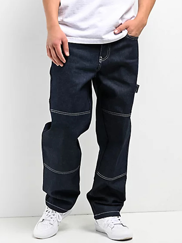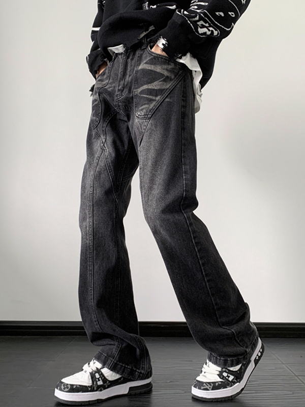 Men’s Vintage Distressed Splice Whisker Wash Loose Jeans