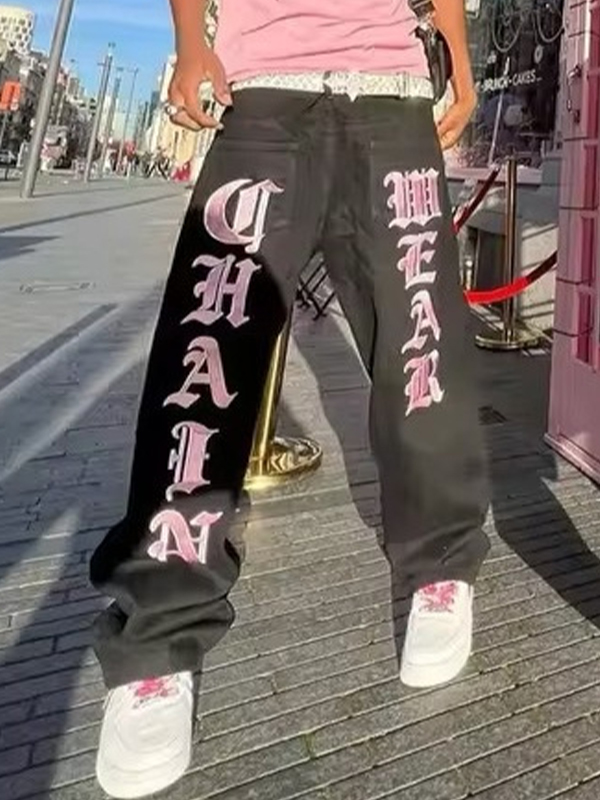 Hip Hop Letter Graphic Print Loose Jeans