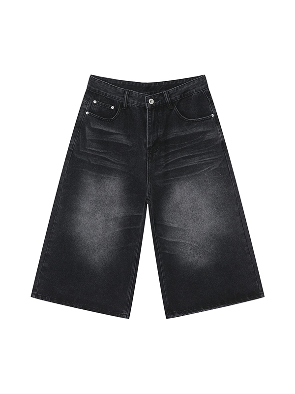 Men’S Retro Washed Wide Leg Straight Denim Shorts