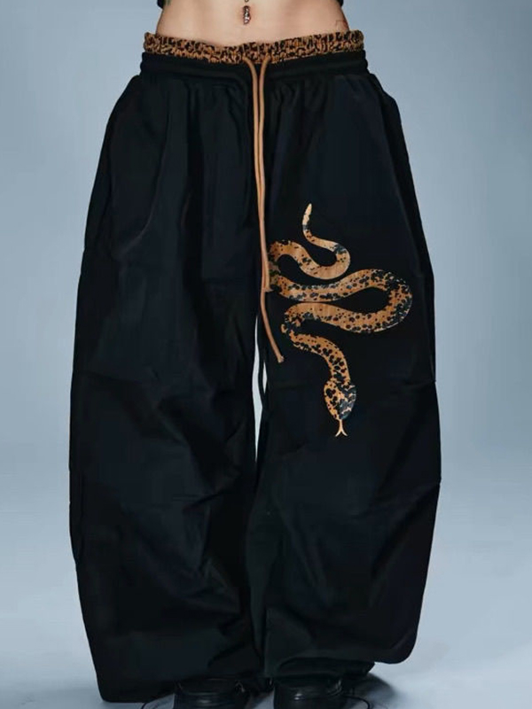 Men’s Ruched Bound Feet Parachute Wide Leg Pants