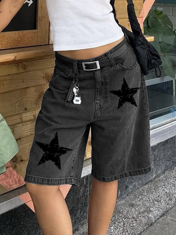 Star Straight Leg Denim Shorts