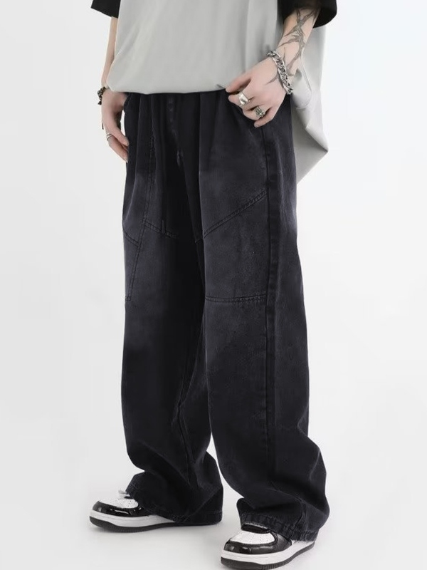 Men’s Ombre Elastic Waist Drawstring Loose Jeans
