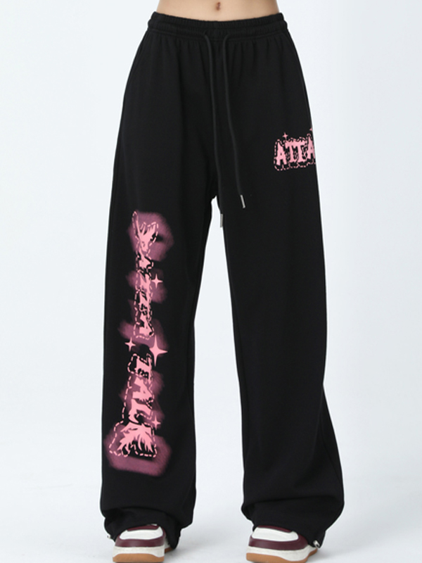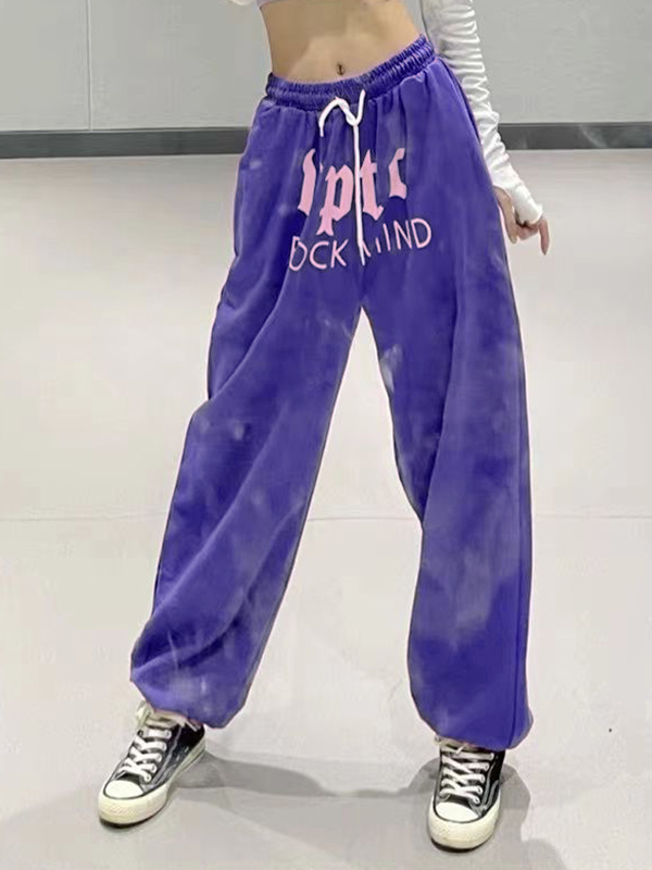 Hip Pop Purple Letter Print Bound Feet Sweatpants