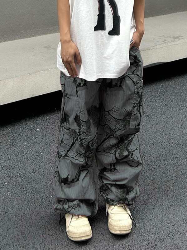 Men’s Branch Graffiti Print Bound Feet Wide Leg Pants