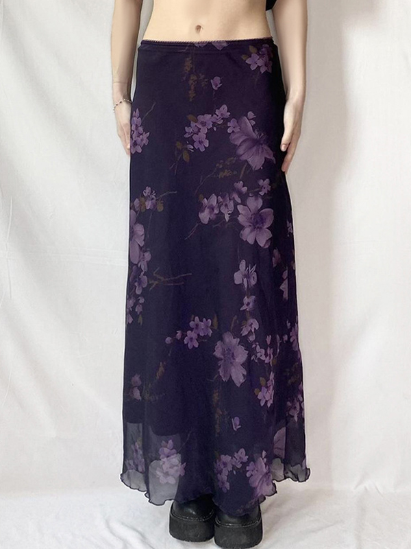 Mystery Purple Botanical Print Maxi Skirts