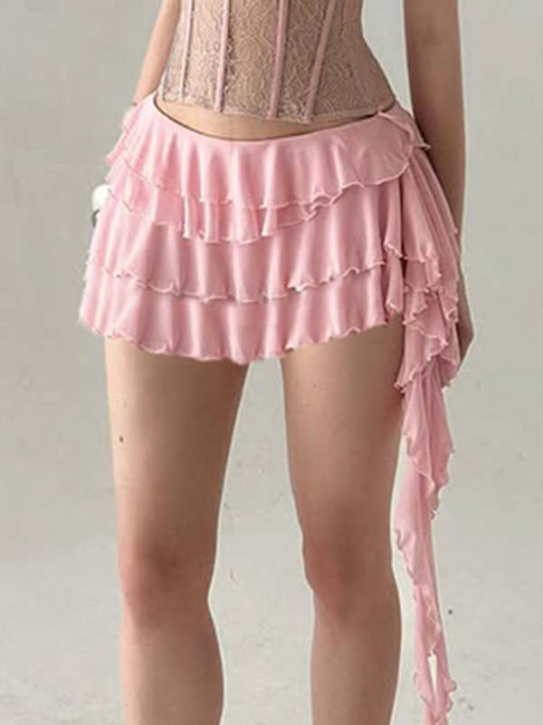 Pure Desire Wavy Edge Diagonal Hem Mini Skirts