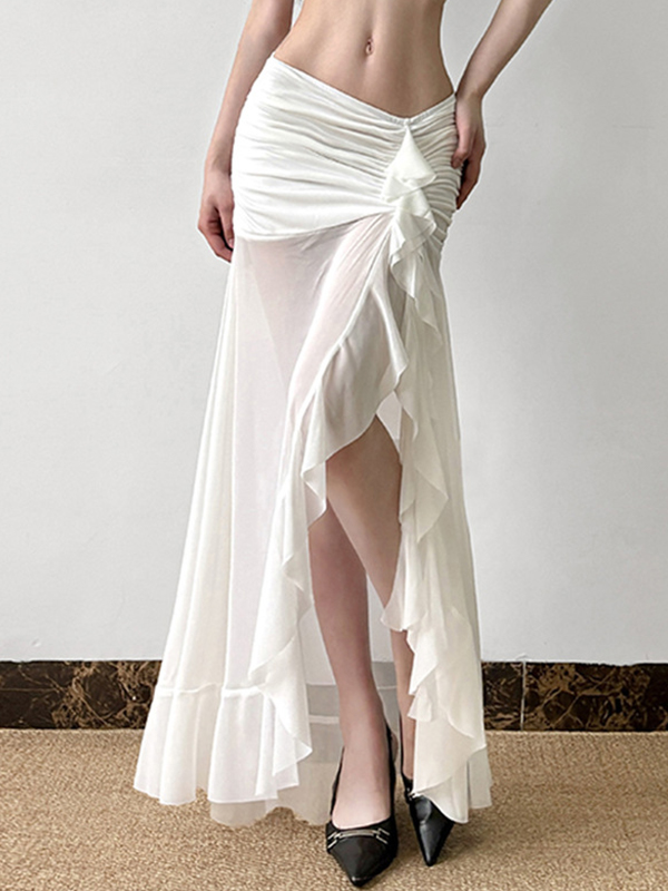 Ruffled Irregular Split Maxi Skirt