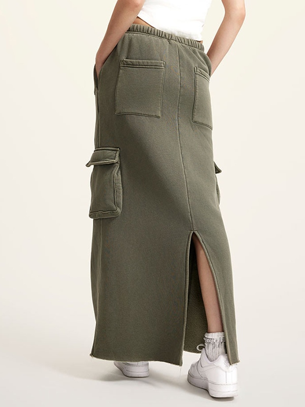 Multiple Pocket Back Slit Cargo Maxi Skirt