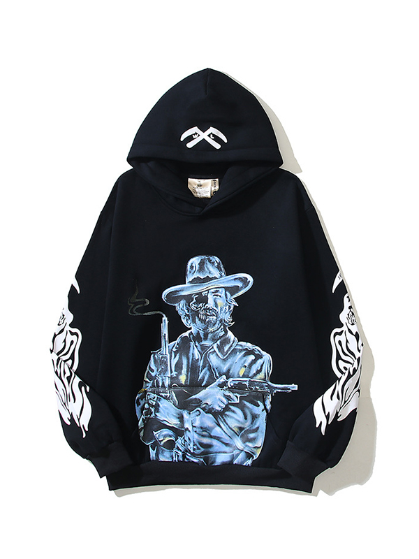Men’s Portrait Plus Velvet Print Oversized Long Sleeve Hoodie