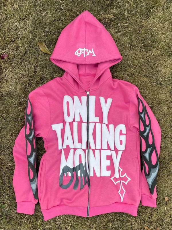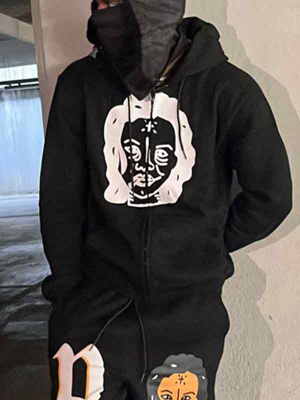 Men’s Street Abstract Print Double Zip Oversized Hoodie