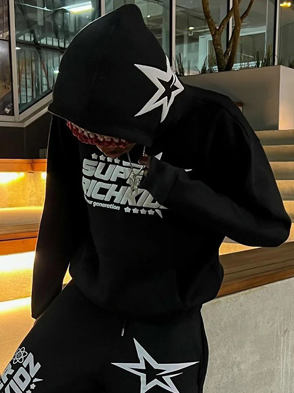 Men’s Star Lettering Oversized Long Sleeve Hoodie