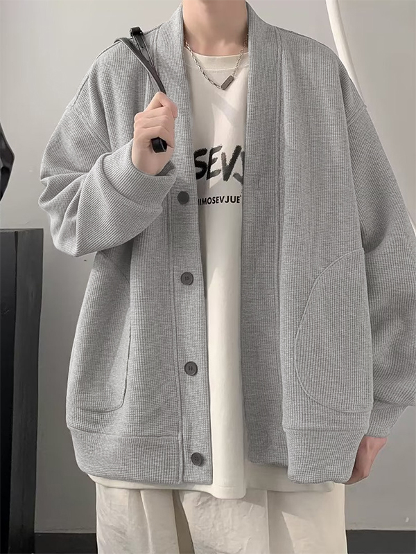 Men’s Solid Waffle V Neck Cardigan Jacket