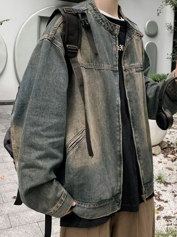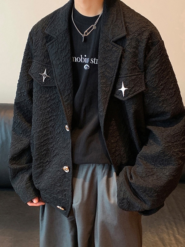 Men’s Textured Metal Star Decor Shawl Neck Jacket