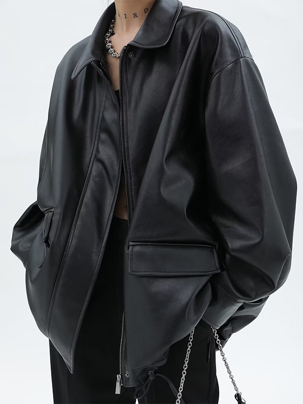 Large Lapel Leather Loose Jacket