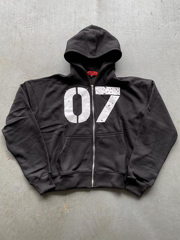 Men’s Heart Spider Web Print Zip Up Oversized Hoodie