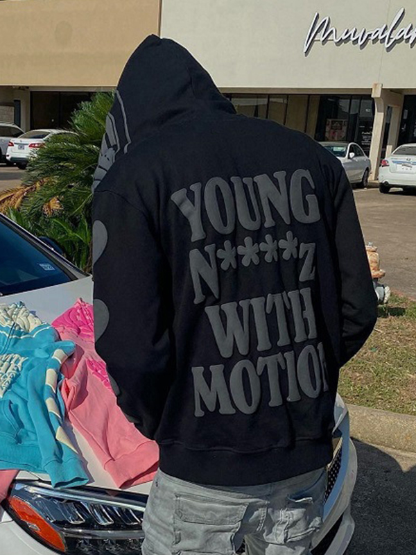 Men’s Hip Pop Letter Heart Print Oversized Hoodie