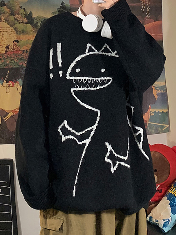 Men’s Cartoon Dinosaur Pullover Sweater