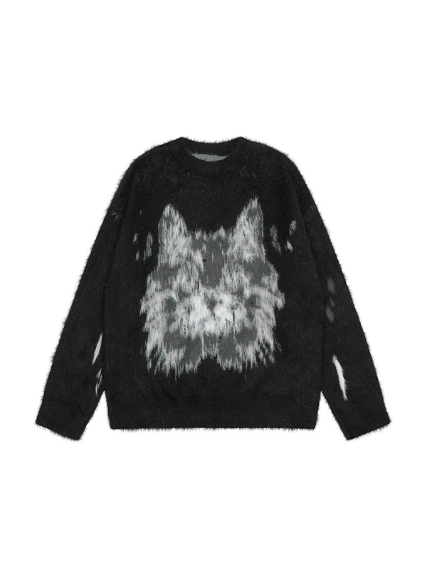 Men’s Vintage Abstract Kitty Jacquard Pullover Sweater