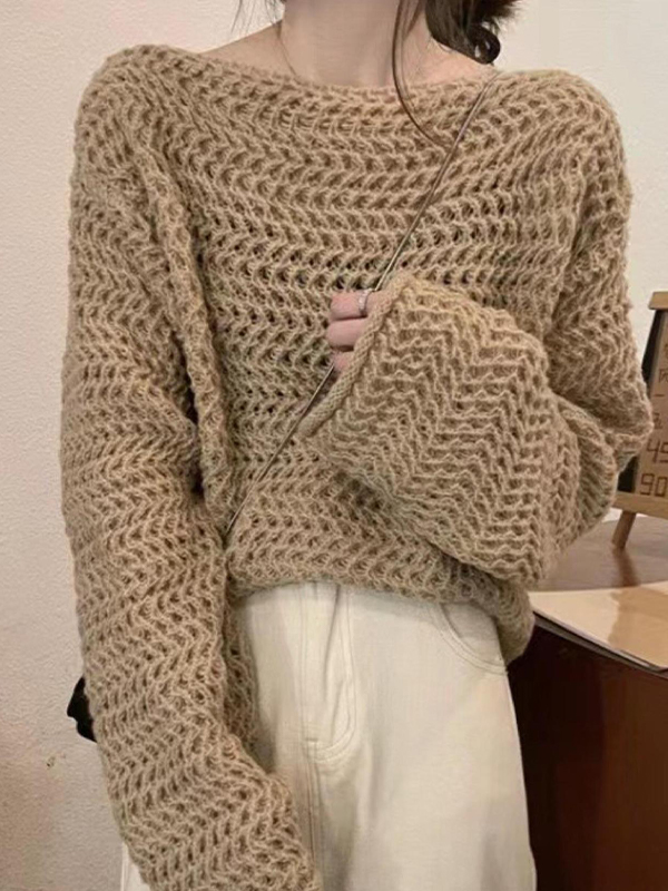 Solid Crochet Loose Knit Sweater