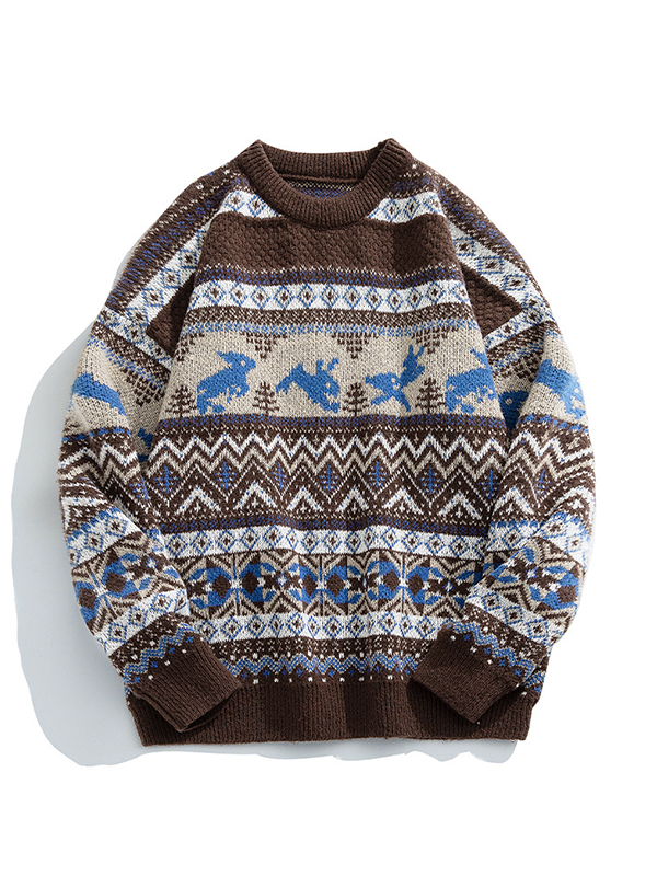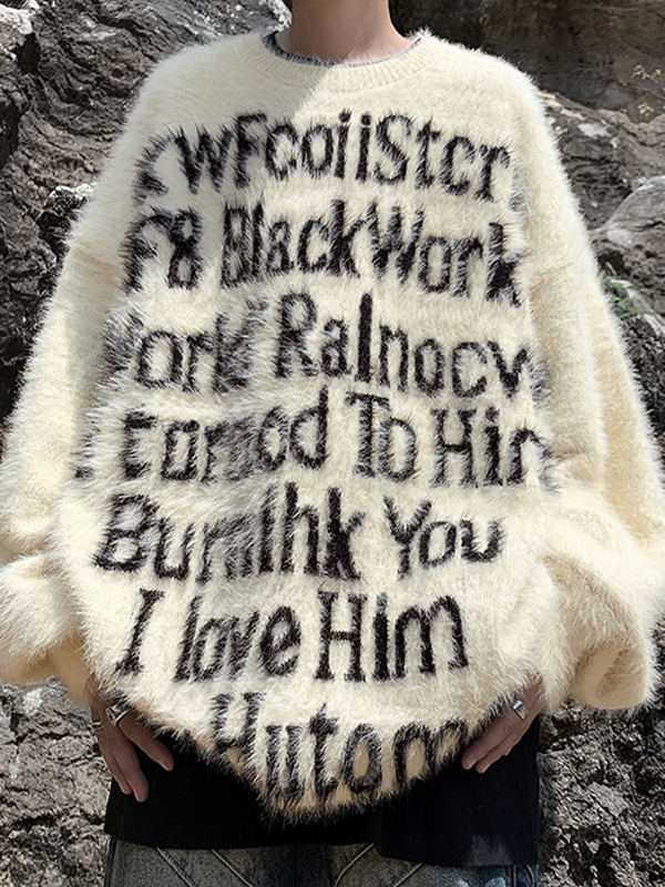 Cartoon Hand-Painted Imitation Mink Round Neck Sweater