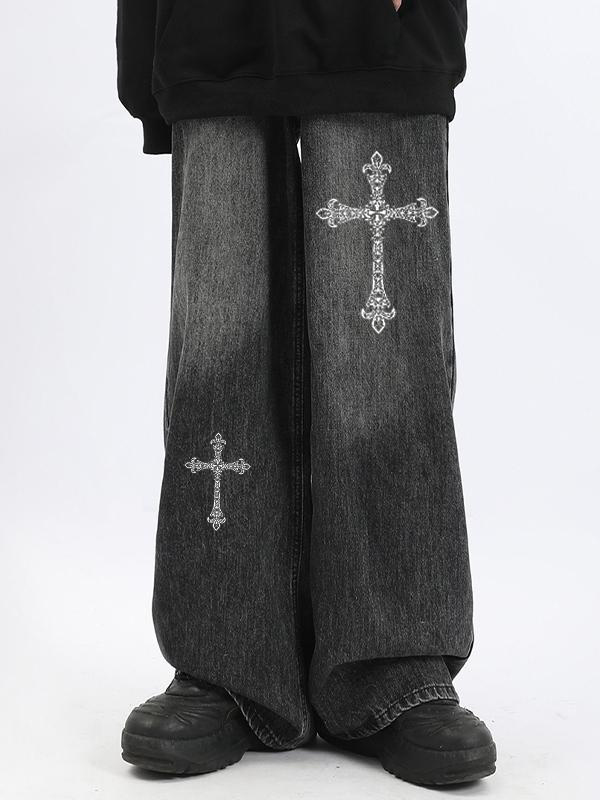 Men’s Cross Washed Ombre Loose Jean