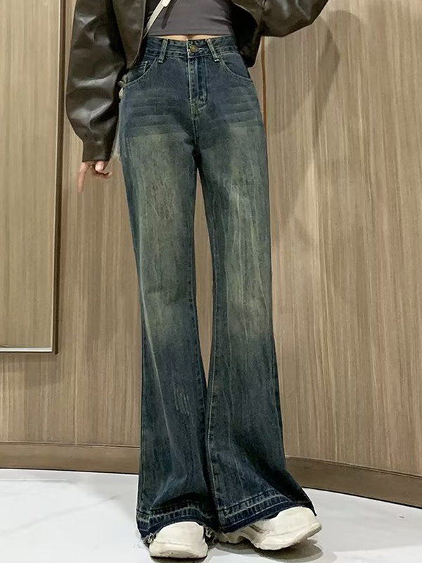 High Waisted Slimming Floor-Length Slightly Raised Flare Jeans