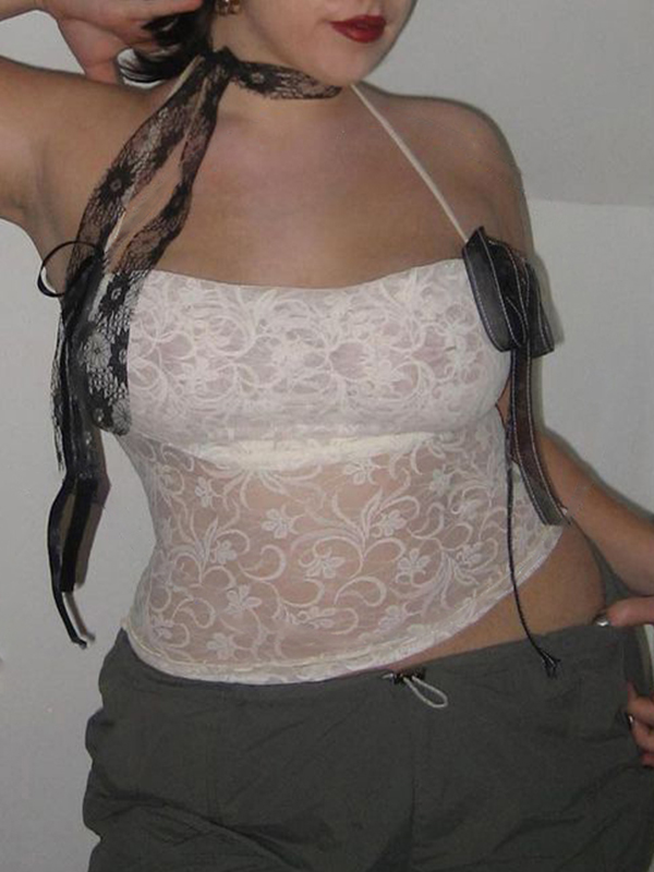 See Through Lace Backless Halter Vest