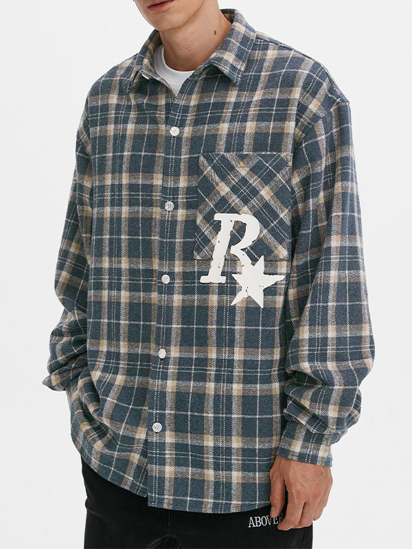 Men’s Plaid Print Embellished Long Sleeve Blouse